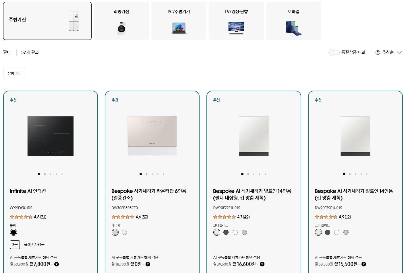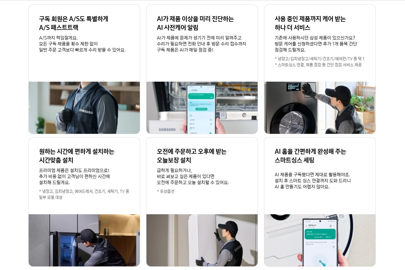 - 최신 삼성 가전 + 정기 관리 + 소모품 + 수리까지 월 구독 요금 하나로